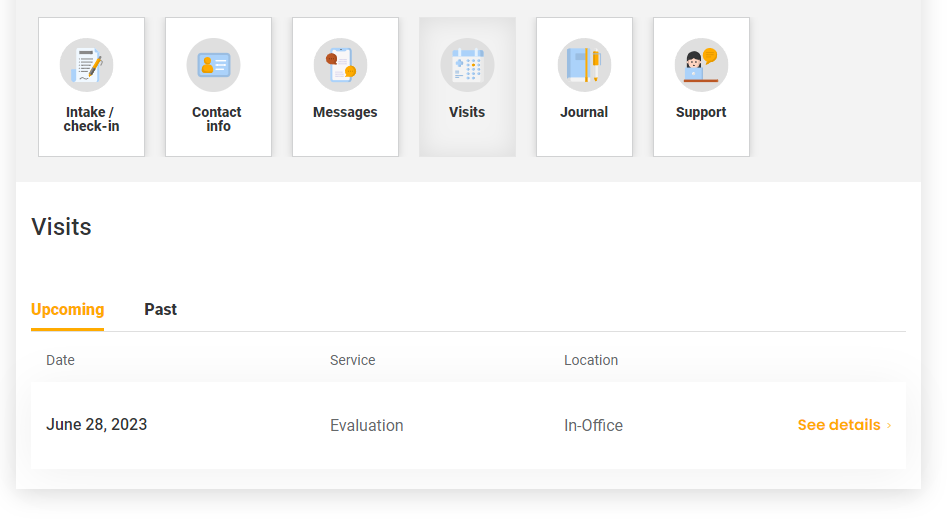 - Select the "Visits" icon from the carousel.