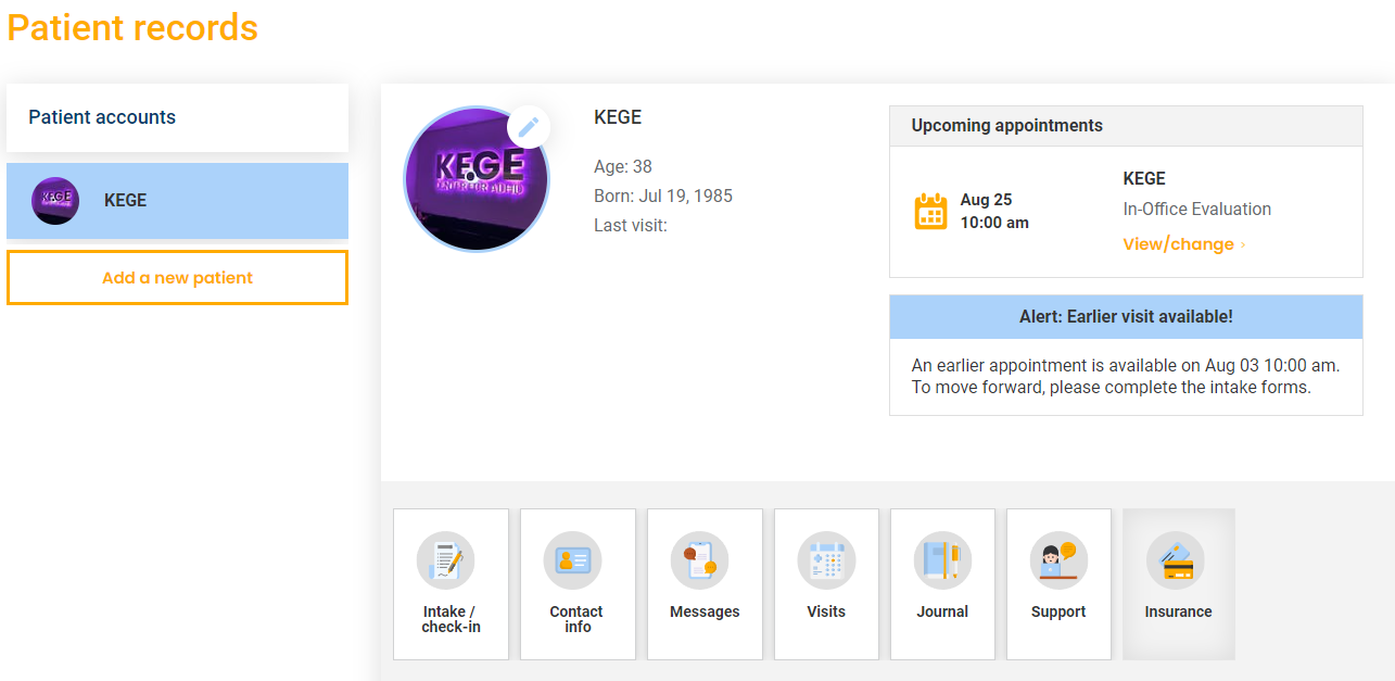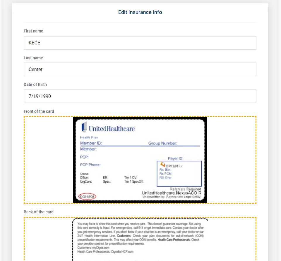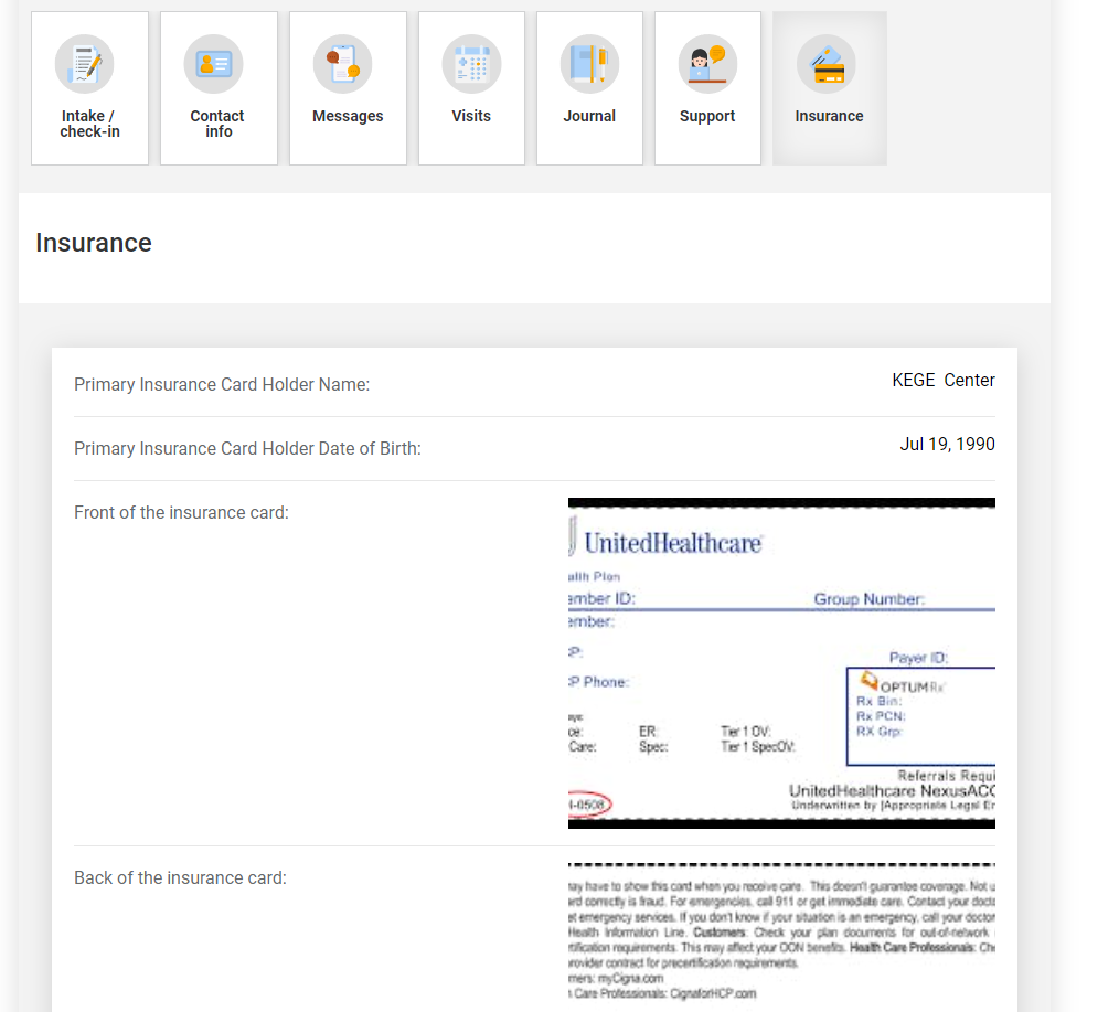 Before your first visit, it is important to verify that we have your correct insurance information on file. KEGE Patient portal allows you to update insurance information 24/7. You can view and update your information by following these steps: